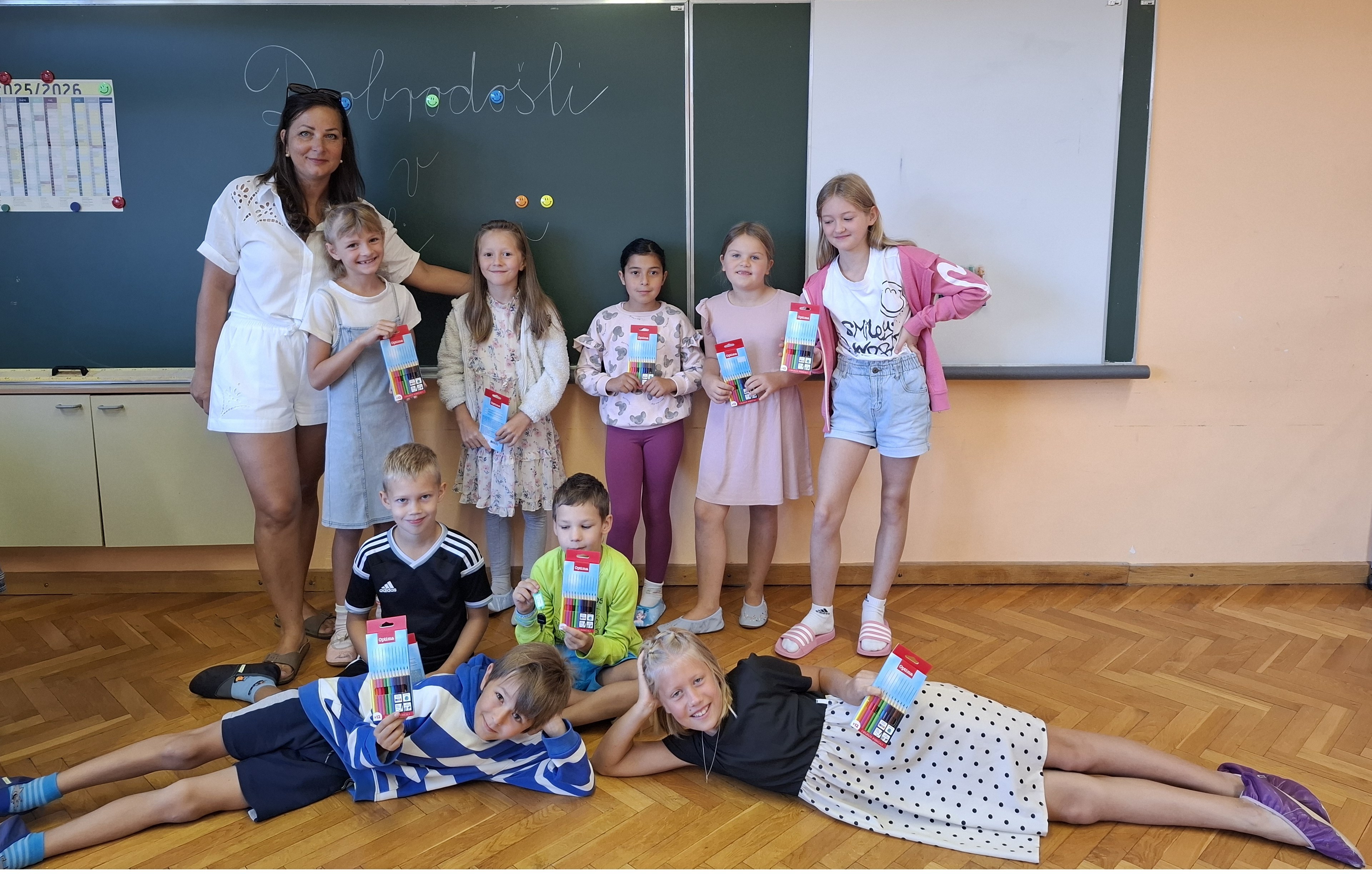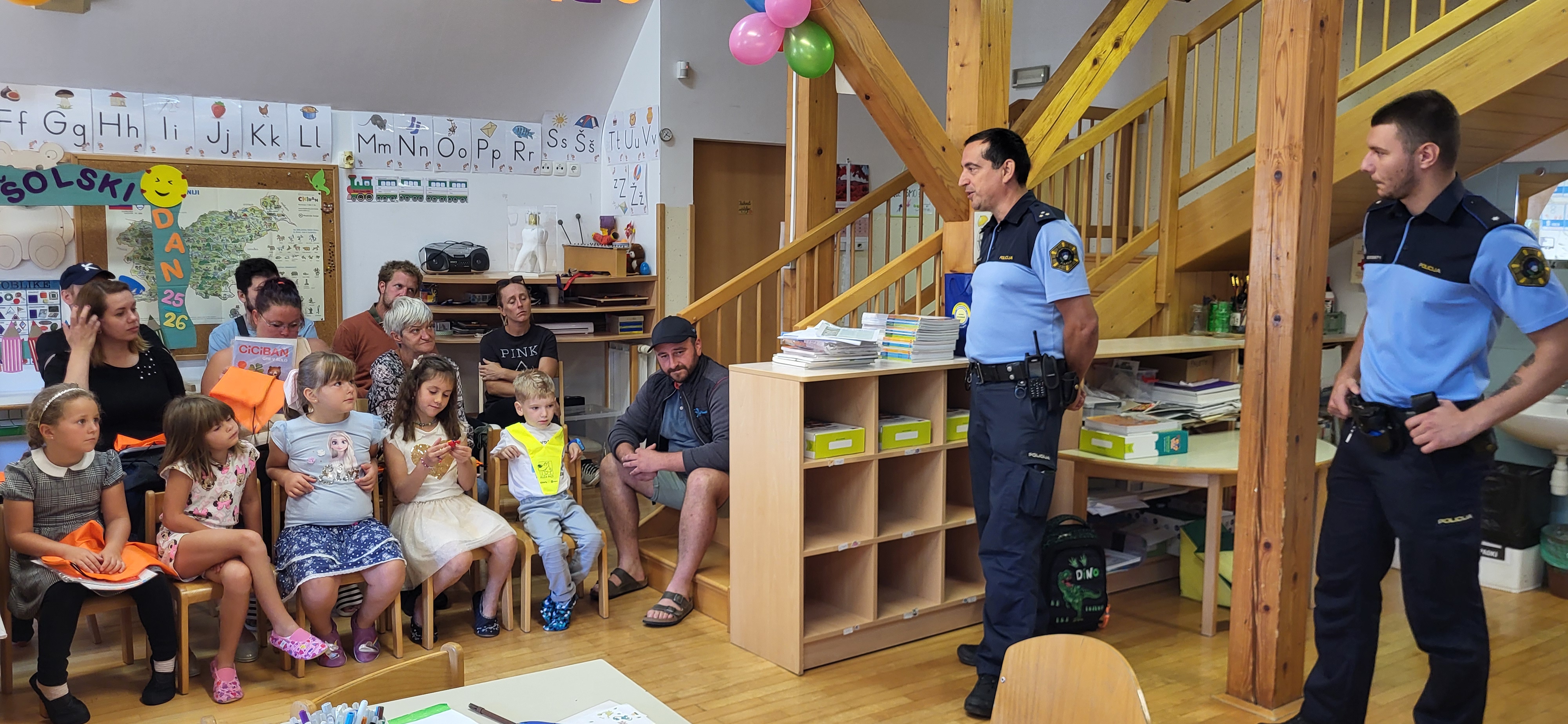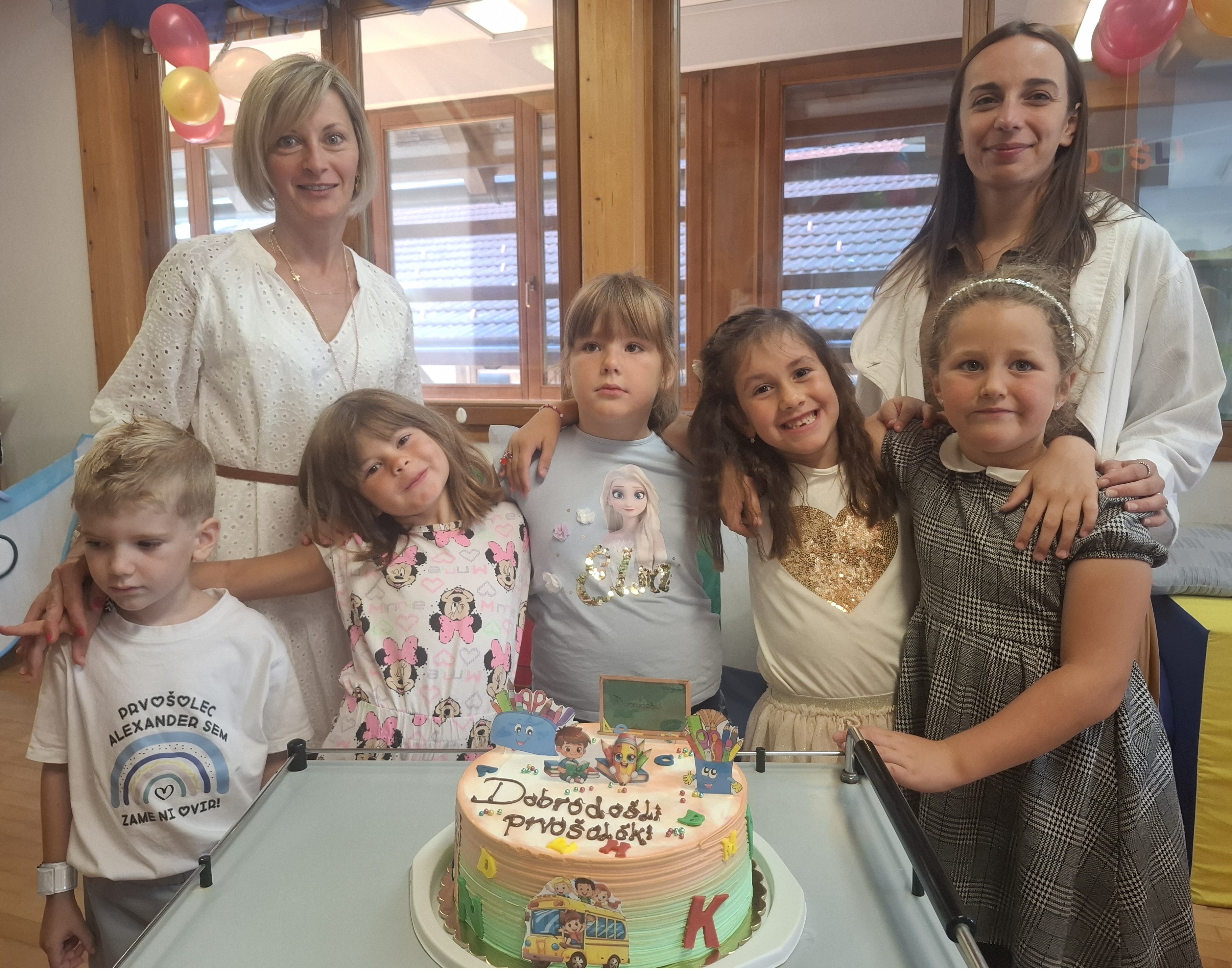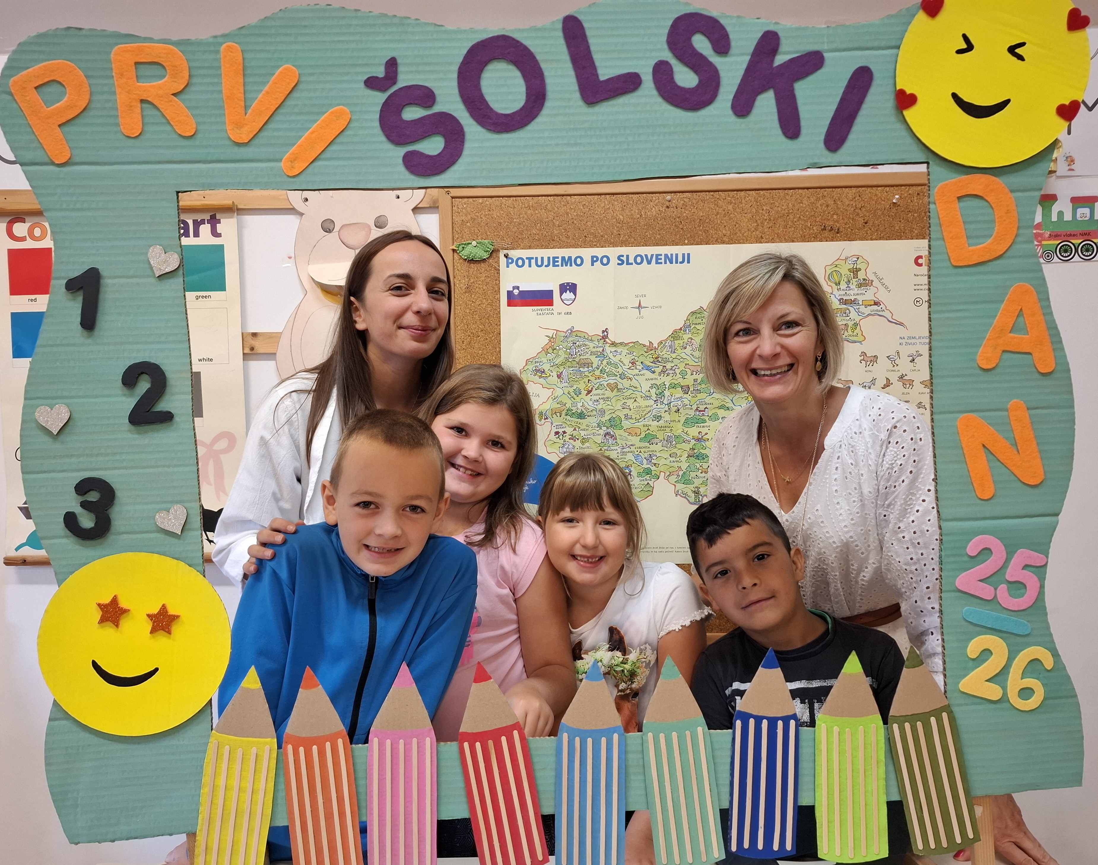 Posebno doživetje je bil prvi šolski dan za naše prvošolce. V spremstvu staršev so prvič prestopili prag učilnice, kjer so jih toplo pričakali starejši učenci in učiteljici Darja in Tamara. Nasmehi, nežna spodbuda in otroška iskrenost so ustvarili ganljiv začetek njihove šolske poti. Prvošolce sta obiskala tudi policista, ki sta jih poučila o varnosti na poti v šolo in jih opremila z odsevnimi trakovi, da bo njihova pot varnejša.