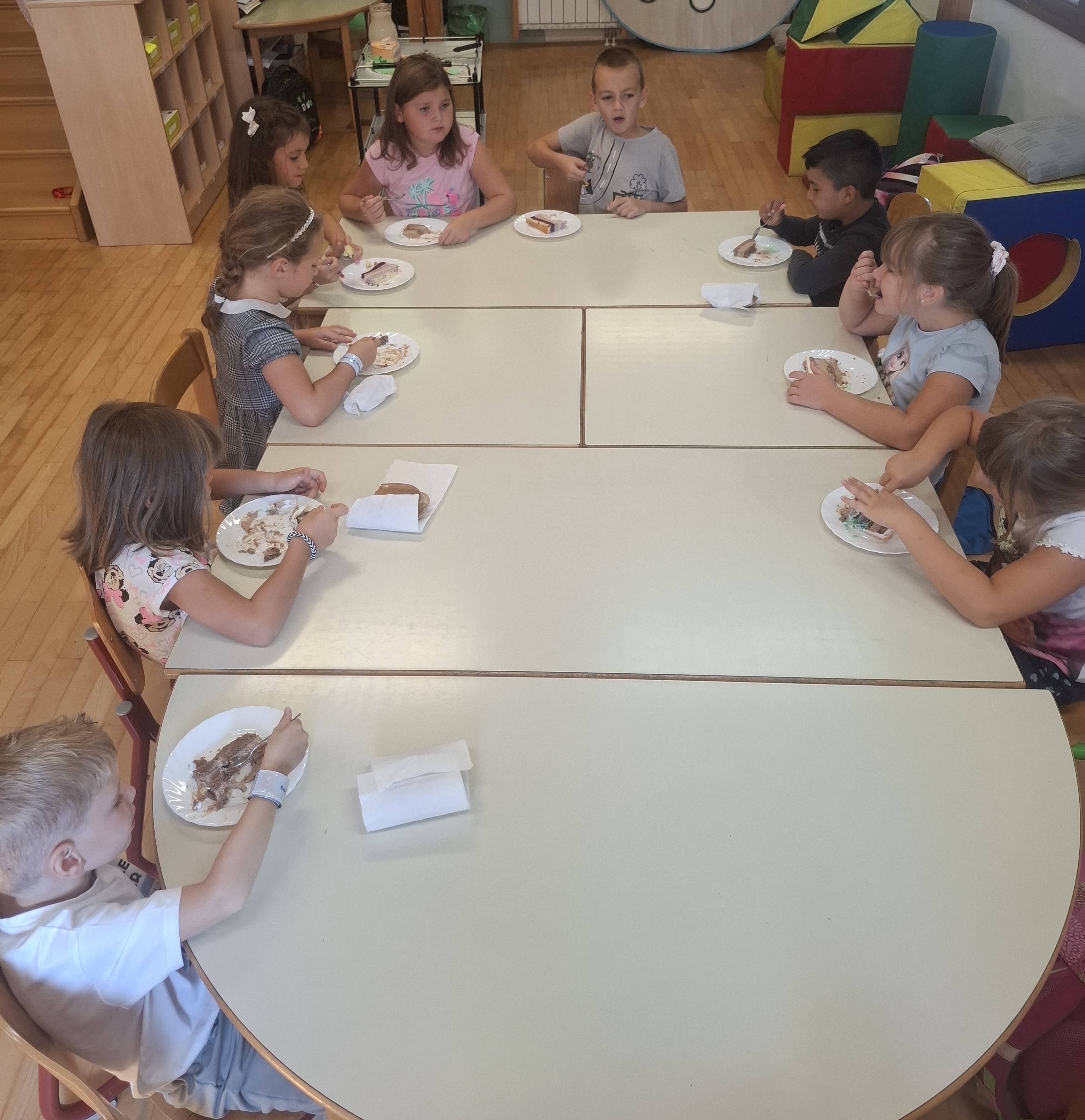 Prvi dan pa ni minil brez sladkega presenečenja – učenci so se posladkali s sladoledom in čokoladno torto, prejeli pa so tudi manjše simbolično darilo.