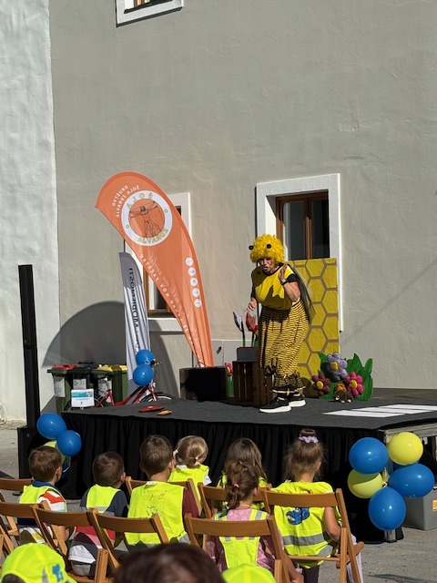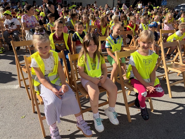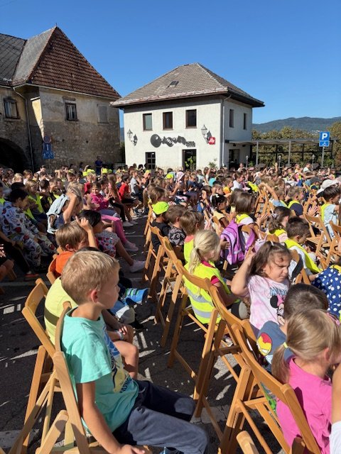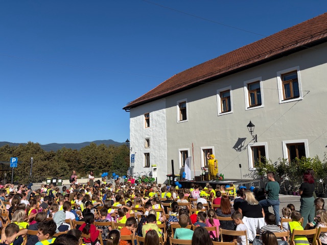 V okviru Evropskega tedna mobilnosti smo se otroci iz vrtca in učenci od 1. do 4. razreda OŠ Stari trg ob Kolpi v petek, 19. septembra 2025, udeležili otroške gledališke predstave z naslovom »Prometne zagate«, ki jo je uprizorilo gledališče Pravljičarna.