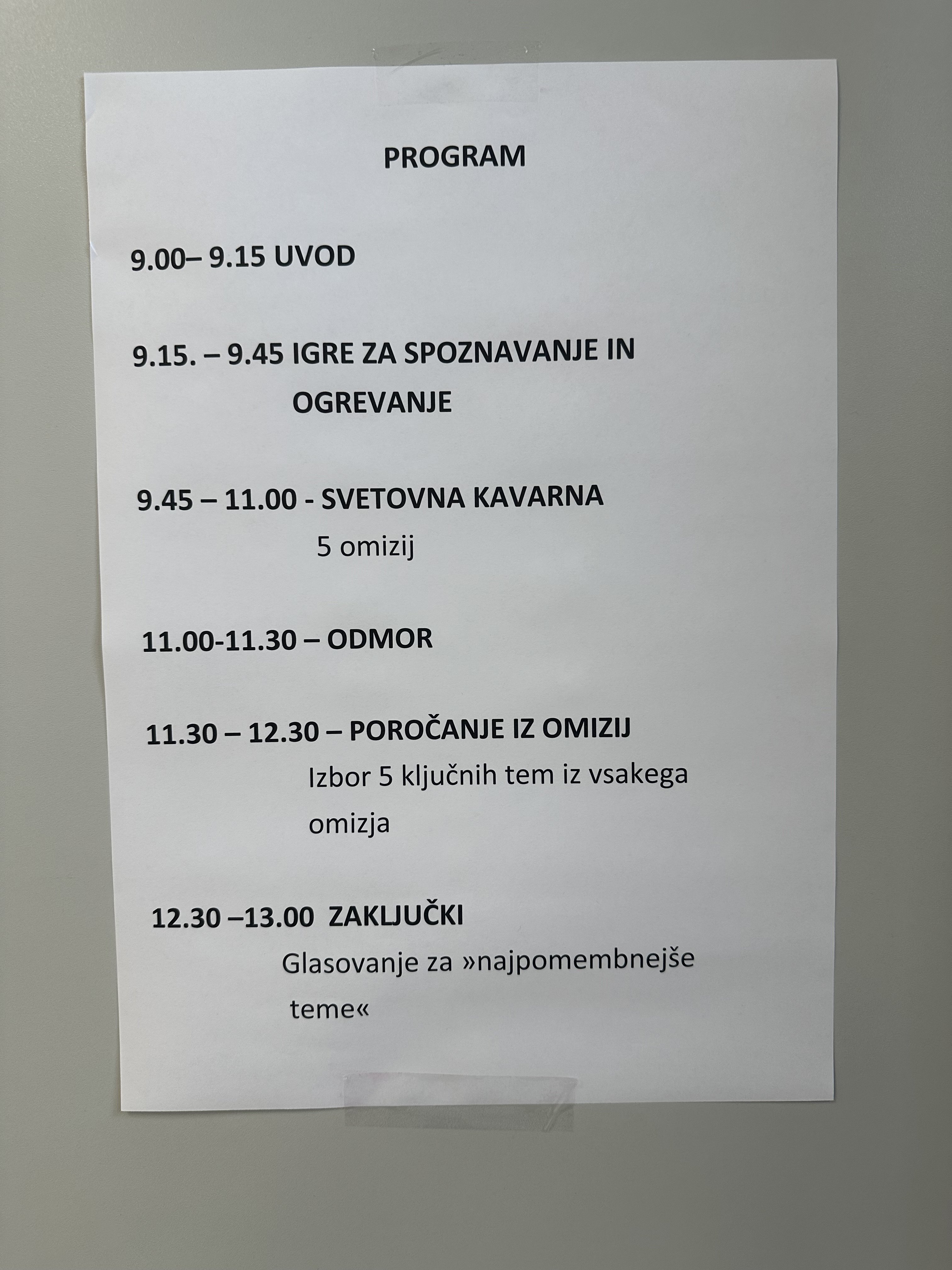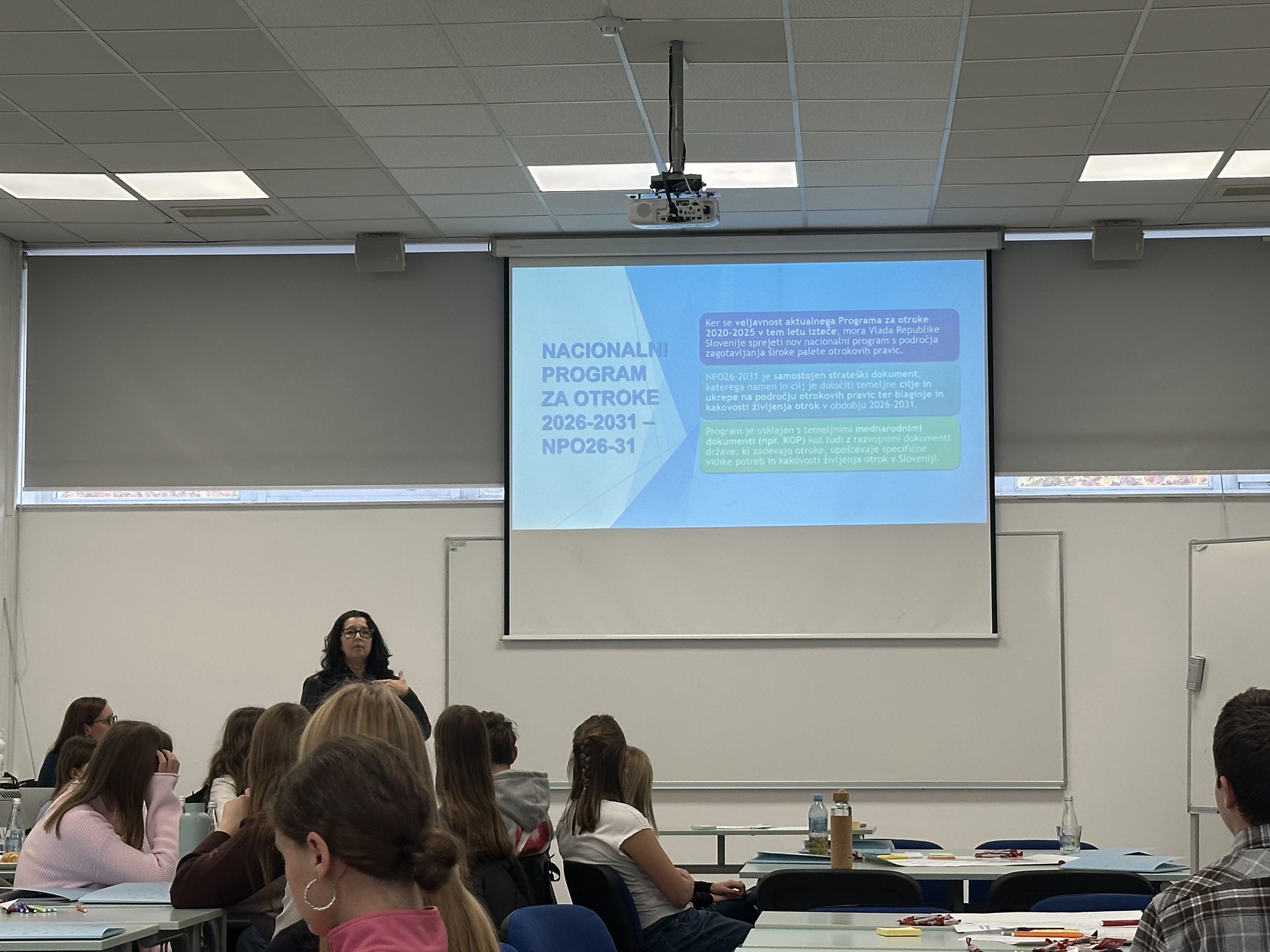 Šlo je za posvetovanje z otroki in mladostniki o tematikah, ki so prednostna področja novega Nacionalnega programa za otroke 2026 – 2031. To je dokument, ki usmerja in določa, kako bo država v naslednjih letih skrbela za pravice in dobrobit otrok. Pri snovanju dokumenta je zelo pomembno tudi sodelovanje otrok in mladostnikov, zato so organizatorje zanimala mnenja učencev in dijakov med 12. in 18 letom starosti, ki jih bodo zapisali in v čim večji možni meri upoštevali pri nastajanju dokumenta.