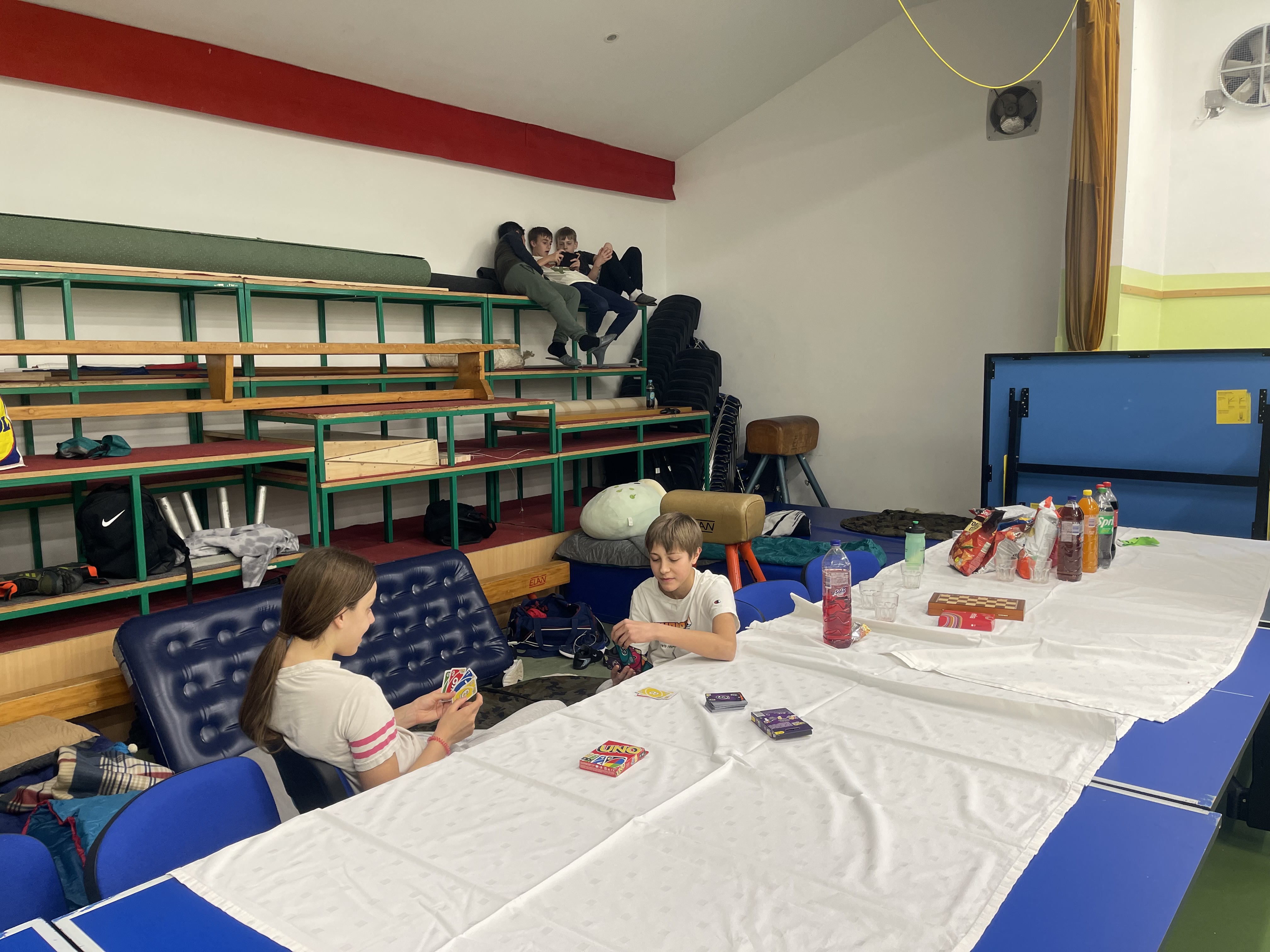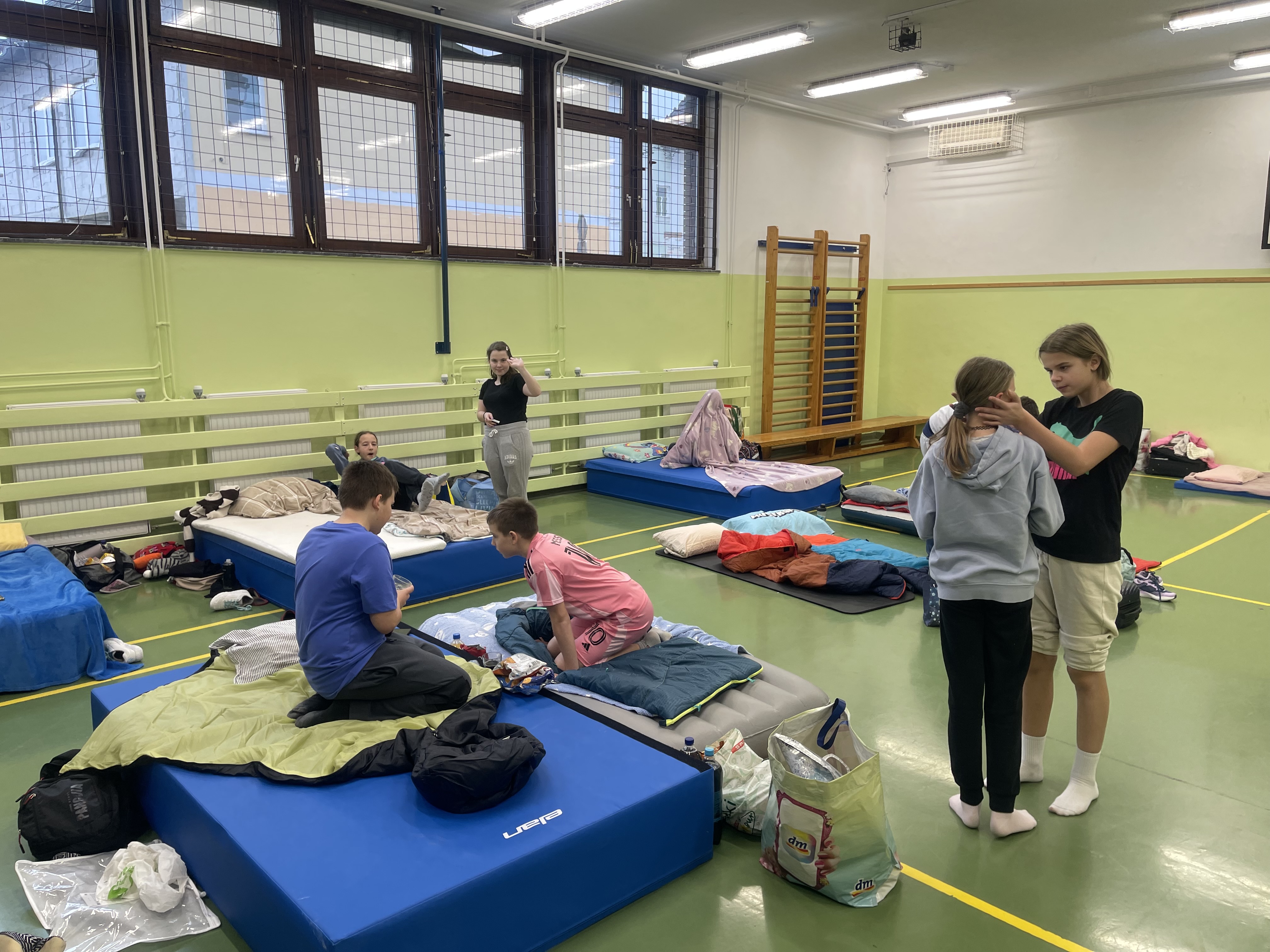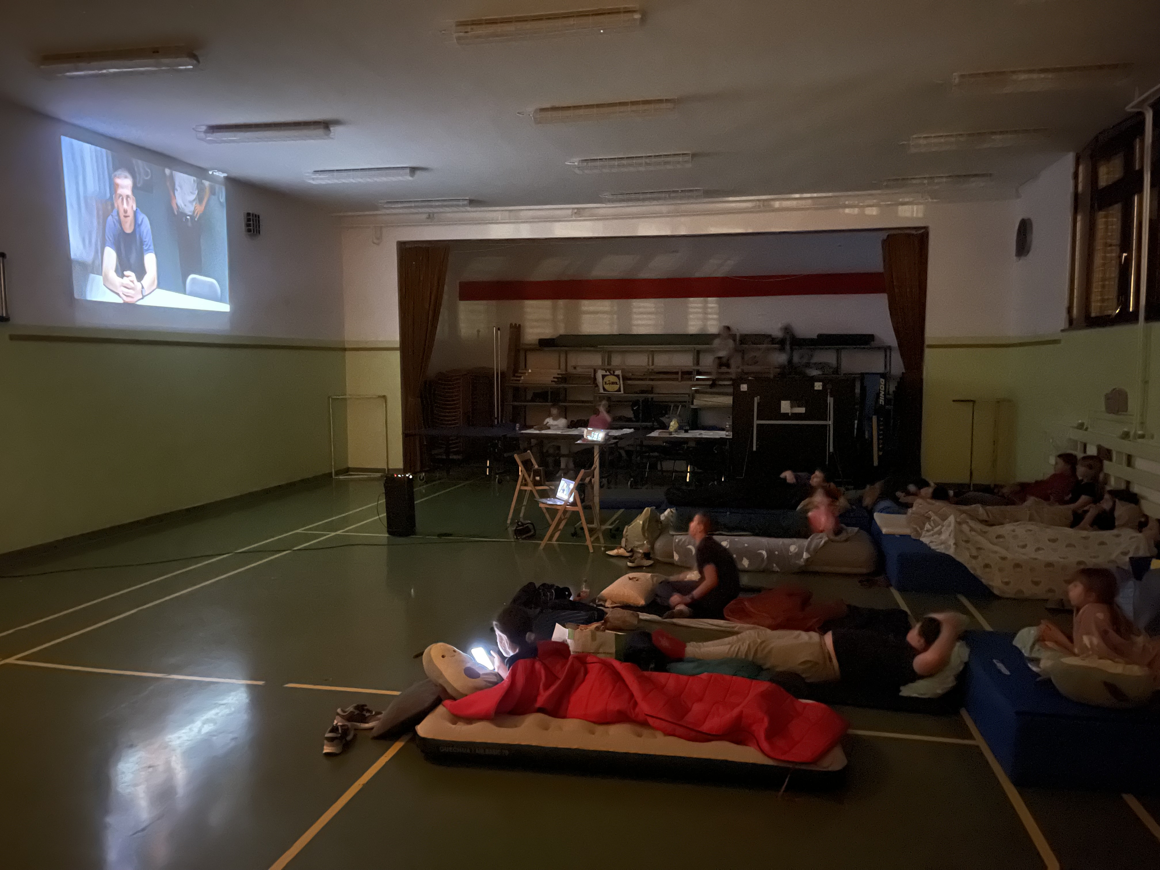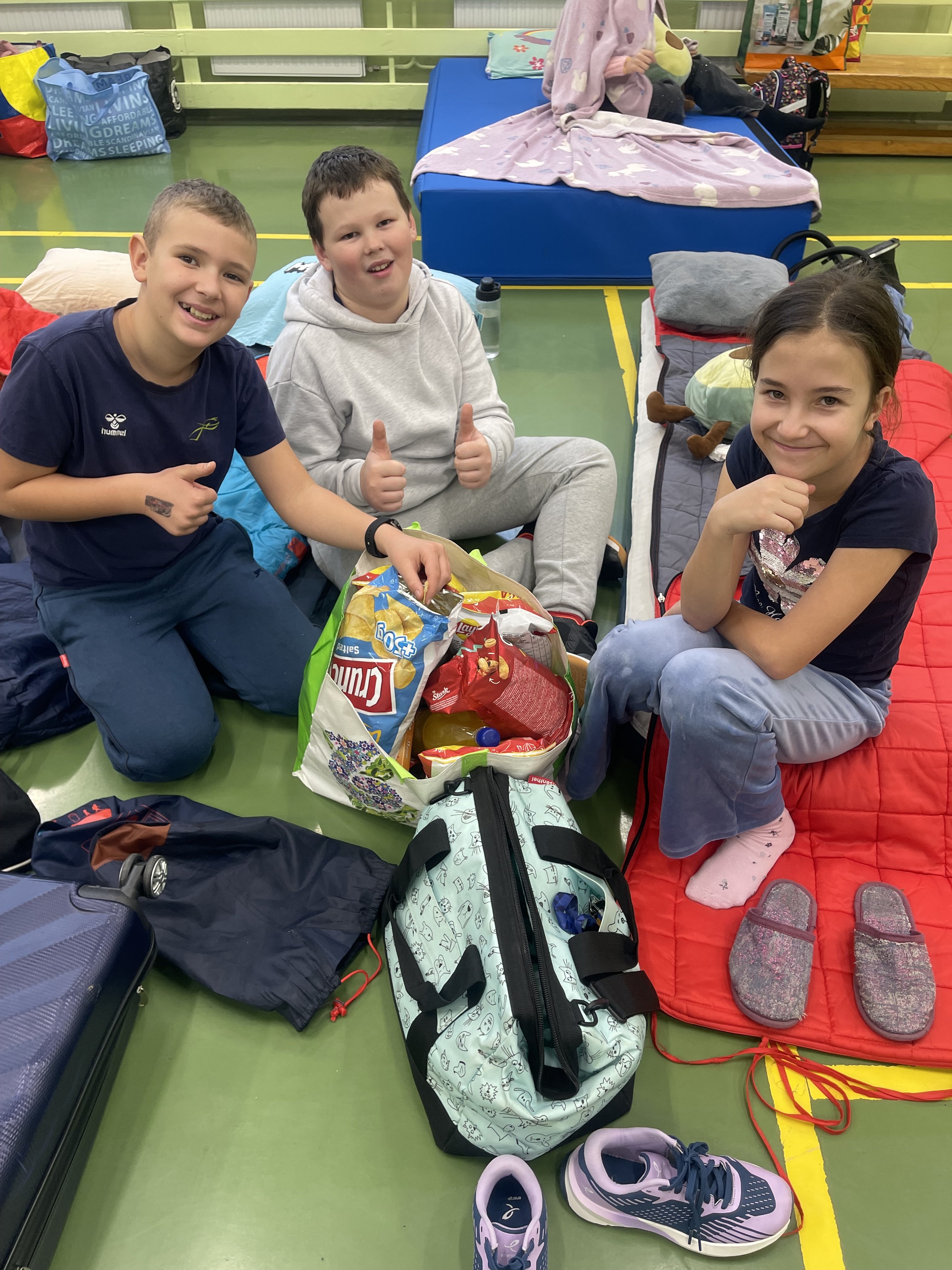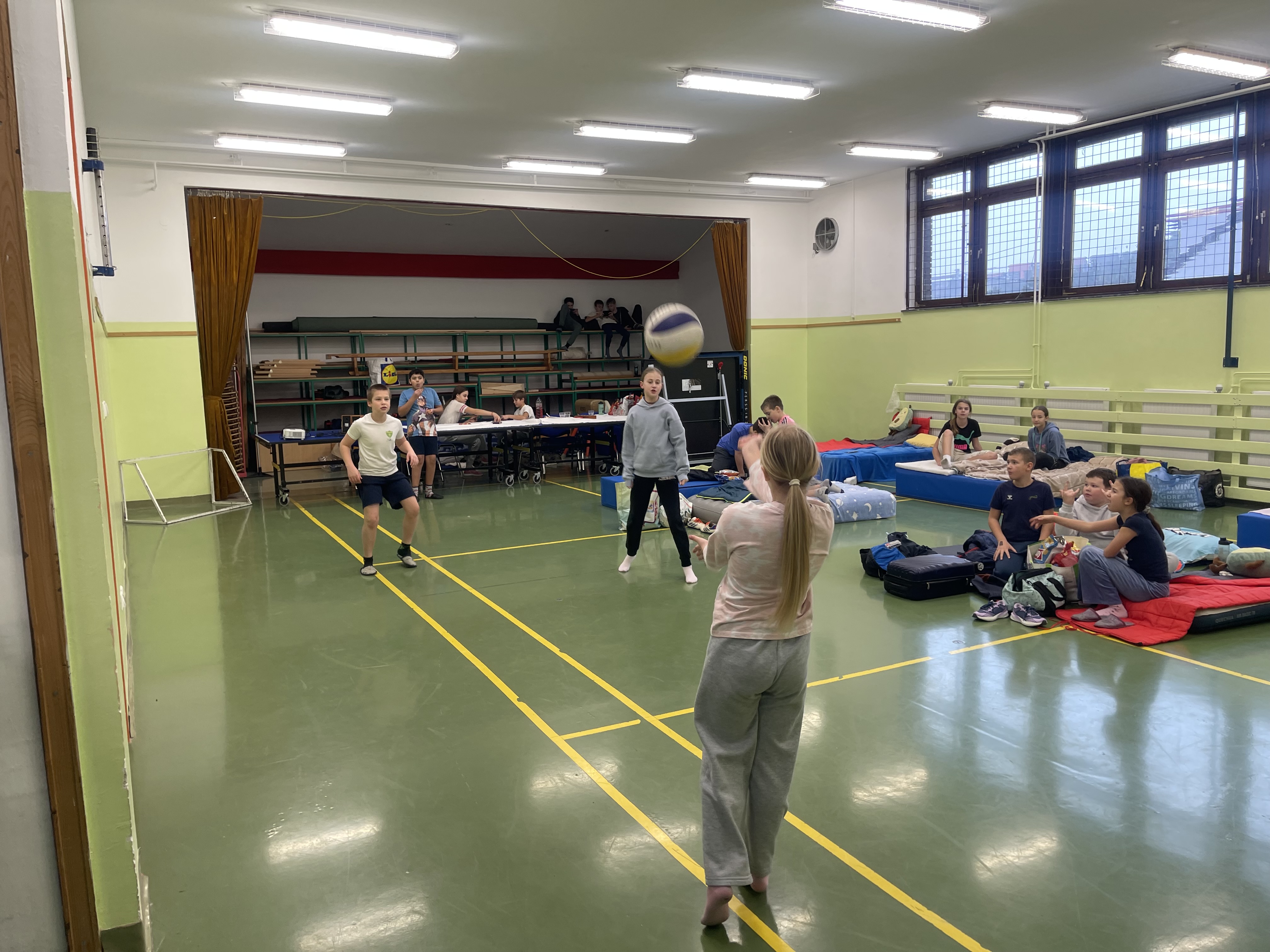 Začeli smo takoj po koncu pouka. Športne, zabavne in družabne igre, vsega je bilo, vsak si je izbral tisto, kar mu je ustrezalo. Po končanih igrah in drugih aktivnostih pa je bil čas za pripravo »spalnic«. Letos premierno, ne ena, ampak kar tri kinodvorane in 3 spalnice, za vsak okus se je našlo nekaj, otroci pa so izbrali tisto kar jim je najbolj ustrezalo, oziroma je ustrezalo njihovi starosti, saj so bili zbrani učenci od 5. do 9. razreda.