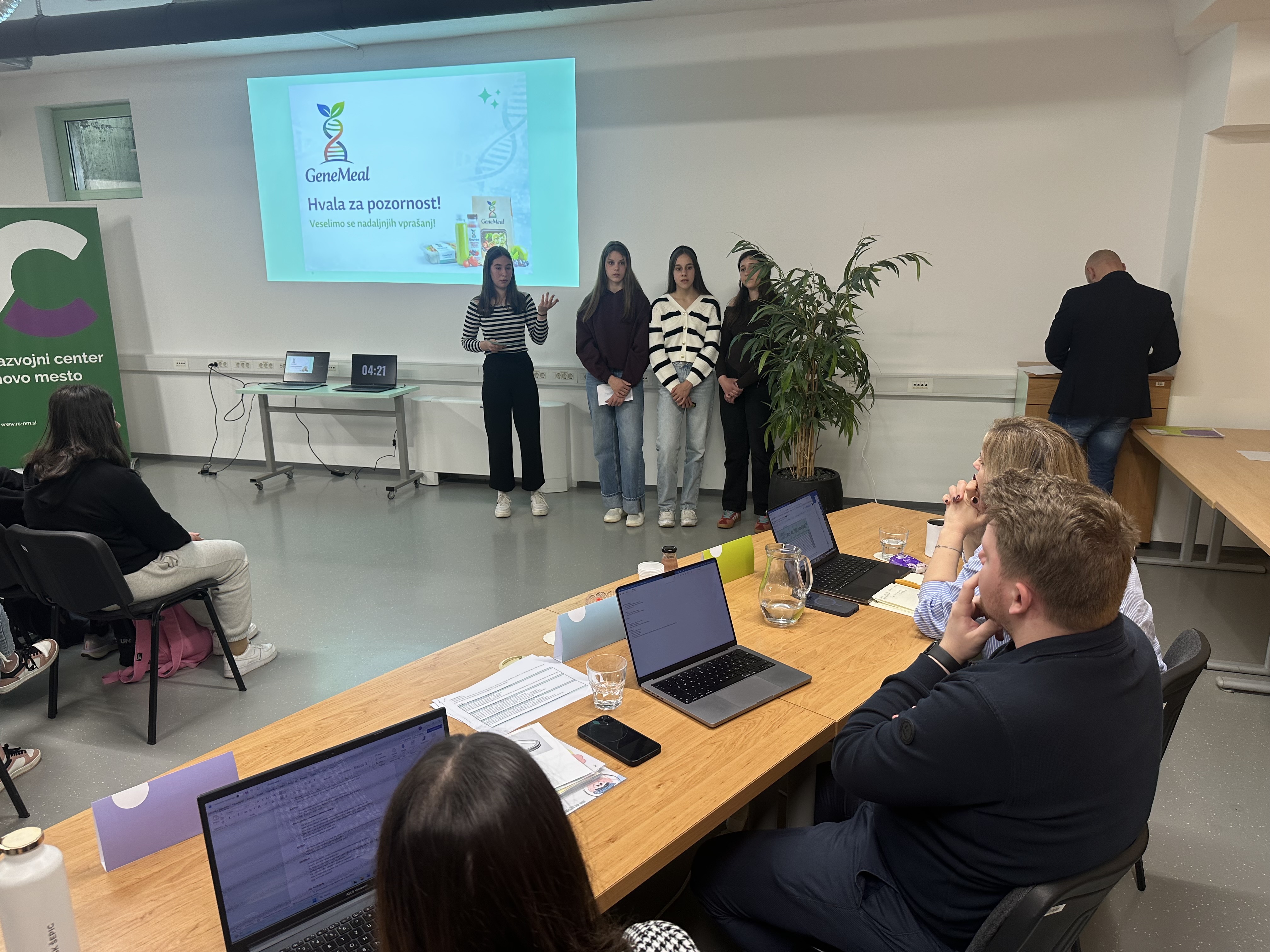 Na naše učence smo izjemno ponosni, saj so s svojo udeležbo dokazali, da imajo veliko idej, energije in podjetniškega duha. Še posebej pa so se izkazale Sara, Nina, Jana in Maruša z GeneMeal, ki so se uvrstile med najboljše tri ekipe tekmovanja in si s tem pridobile pravico udeležbe na državnem tekmovanju, ki bo meseca aprila potekalo v Novi Gorici, hkrati pa so osvojile tudi nagrado v višini 500 €, ki jo bomo lahko uporabili za realizacijo nadaljnjih aktivnosti zmagovalne poslovne ideje. Pri GeneMeal gre sicer za digitalno platformo, ki na podlagi DNK analize posamezniku predlaga prehrano, prilagojeno njegovemu telesu, podjetje pa tudi omogoča nabavo prehranskih paketov, ki so prilagojeni posamezniku.