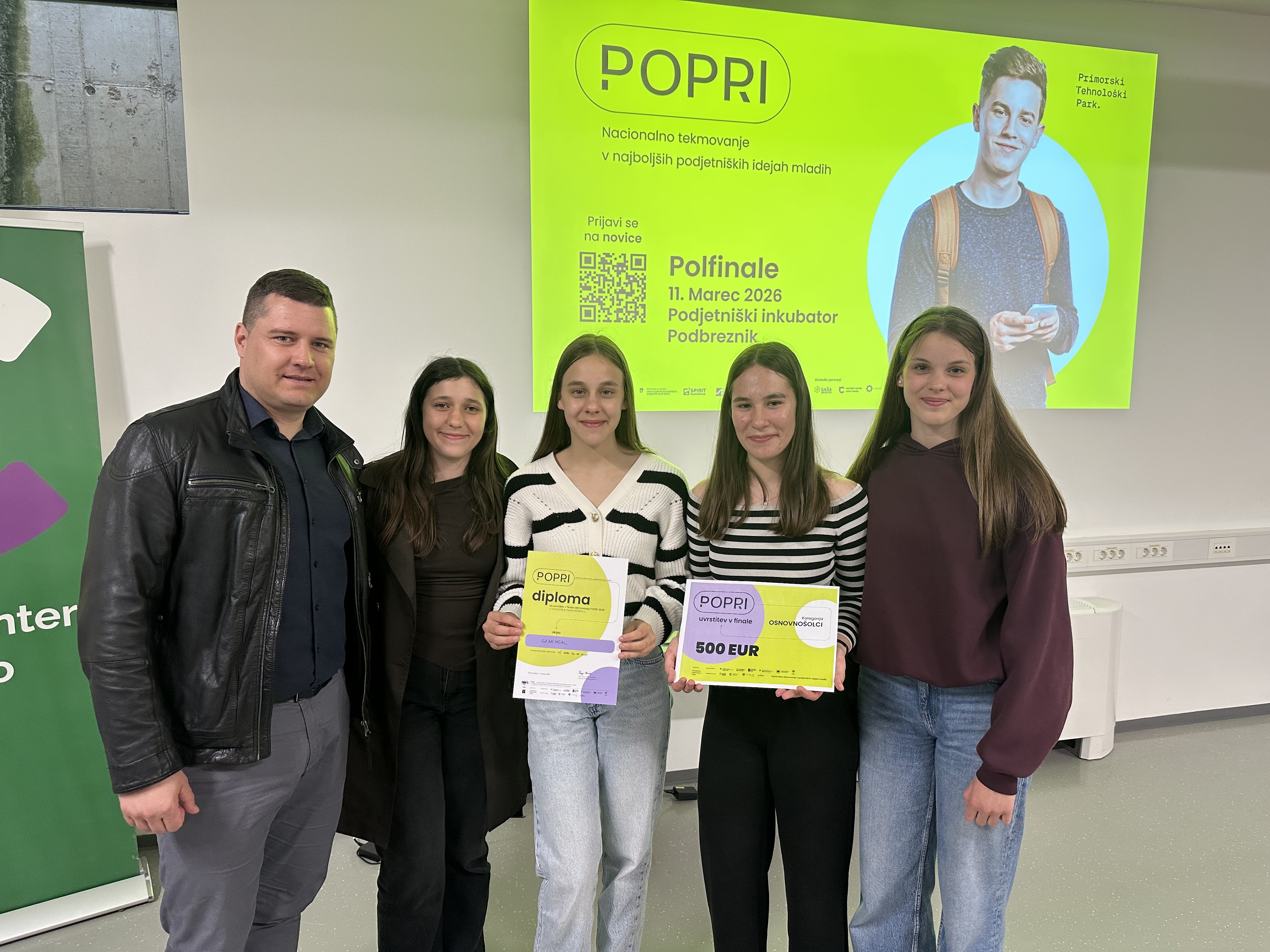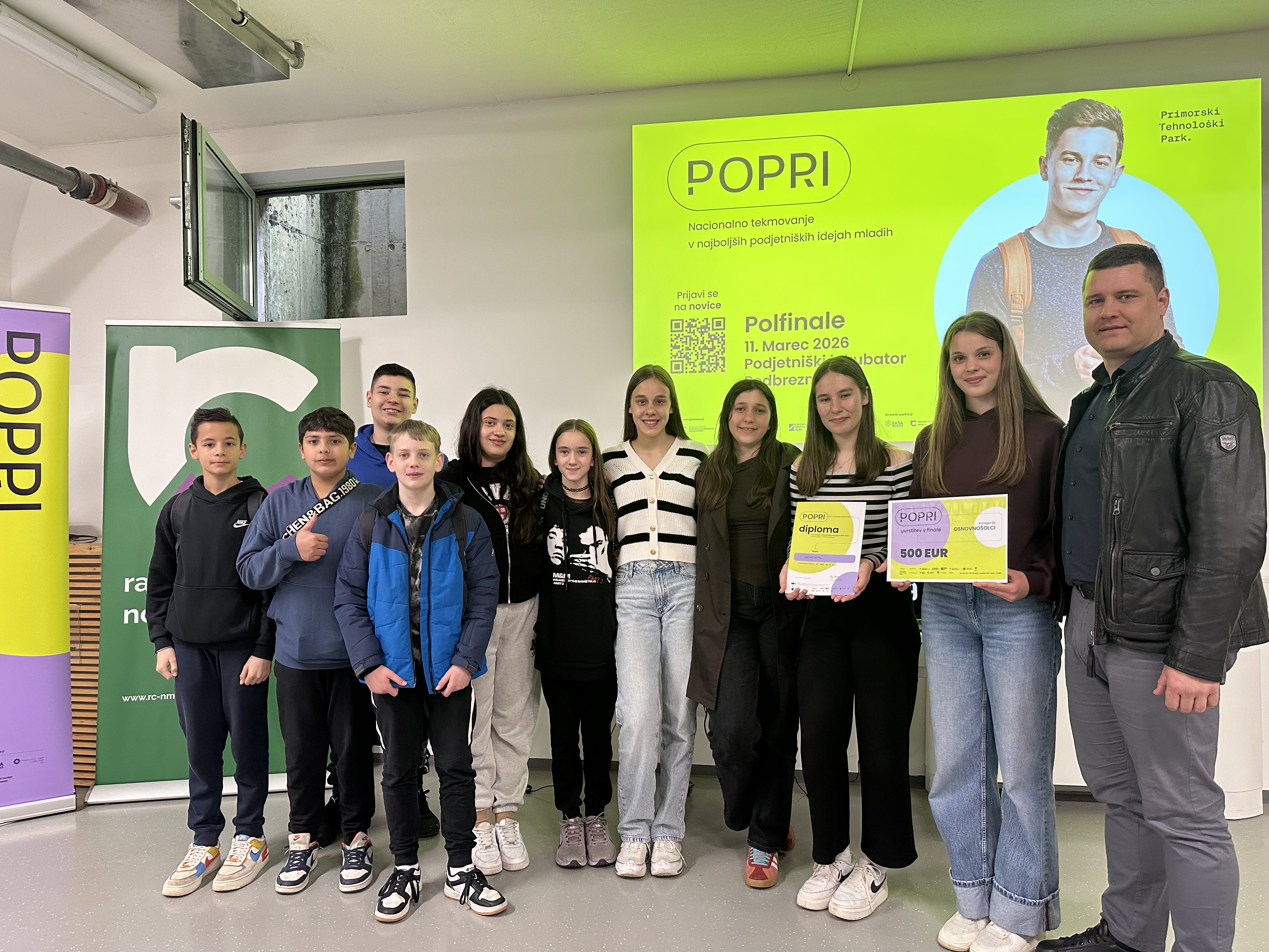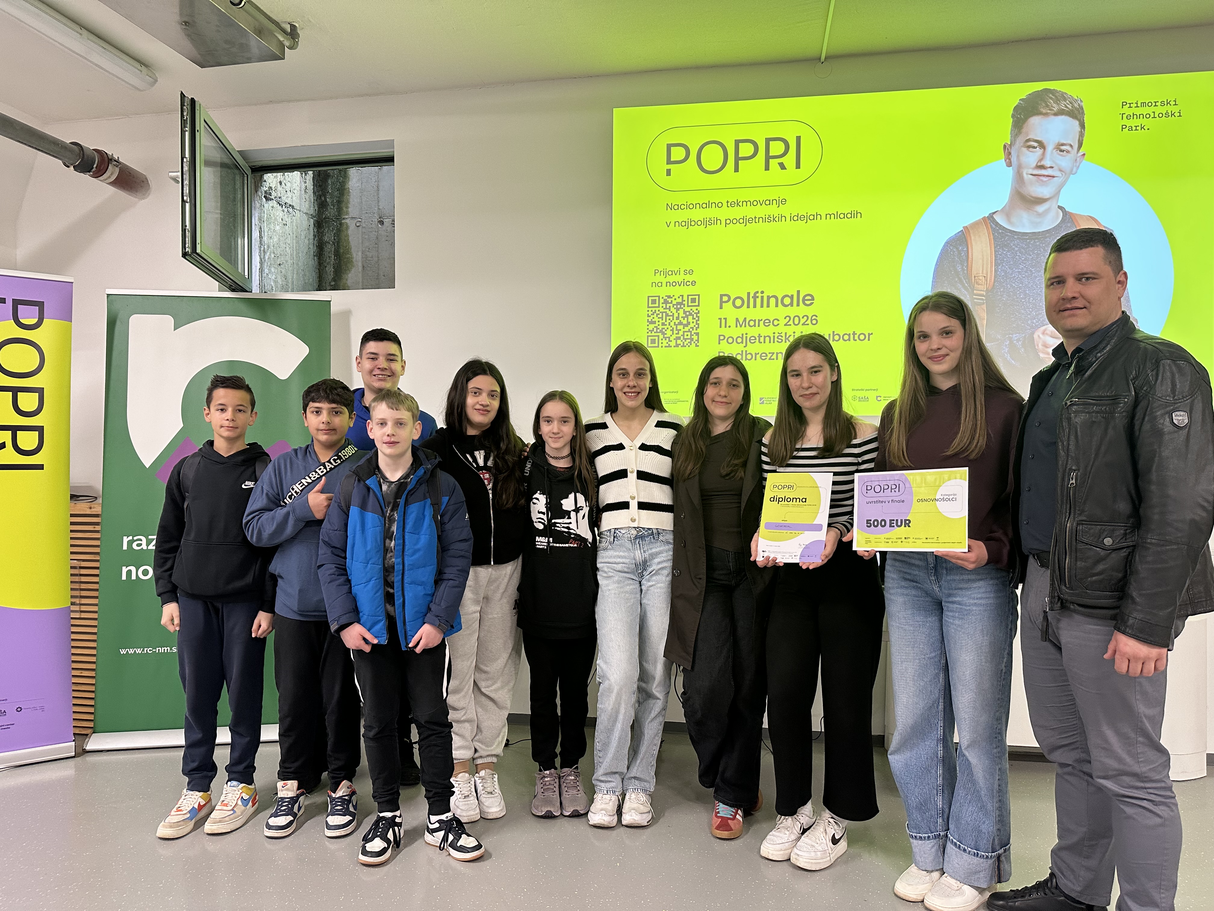 Včeraj, 11. 3. 2026, je na Podjetniškem inkubatorju Podbreznik v Novem mestu potekalo regijsko polfinale tekmovanja POPRI 2026, tekmovanje podjetniških idej mladih. Med sodelujočih 12 ekip v kategoriji osnovnošolcev sta se na podlagi ocenjevanja strokovne komisije v predizboru uvrstili kar dve ekipi iz naše šole. Na nivoju države je sicer sodelovalo 735 mladih z 274 podjetniškimi idejami.